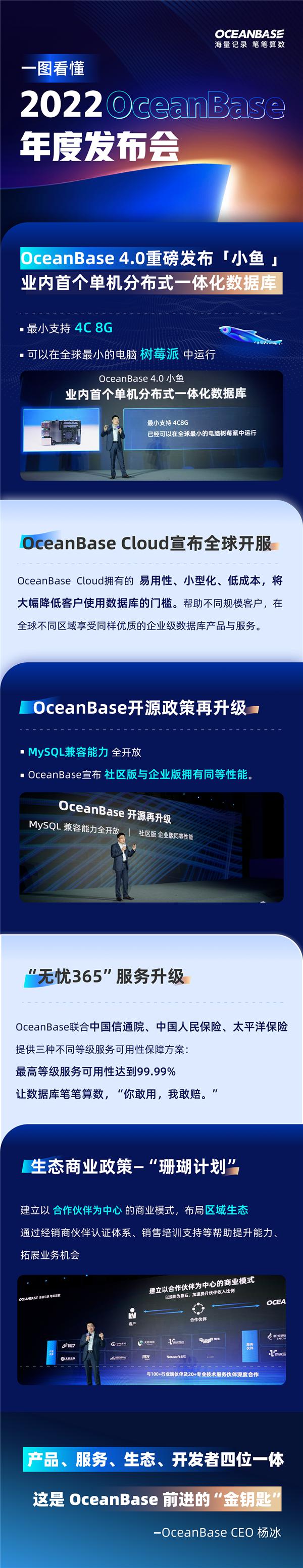 8 月 10 日,2022 OceanBase 年度发布会在京沪深三地同时召开,蚂蚁集团正式发布国产分布式数据库 OceanBase 4.0 版本。